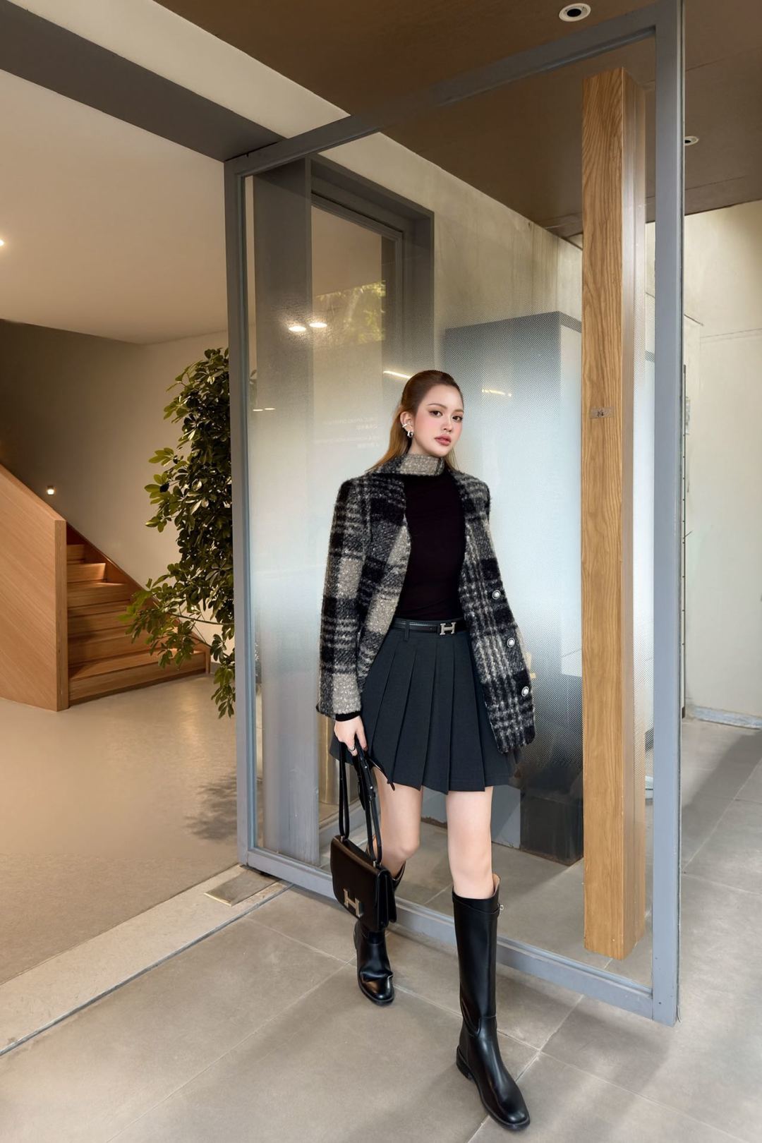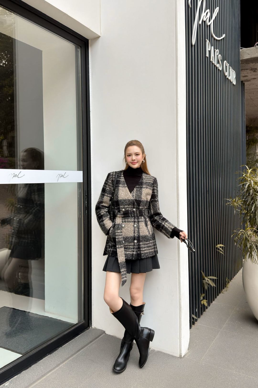 Cha 25fw v-neck belted dress jacket