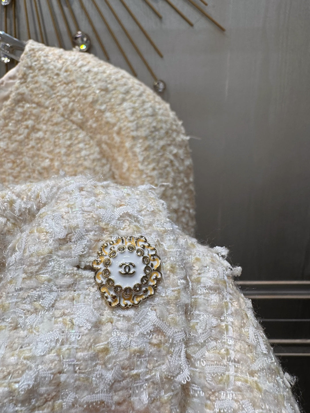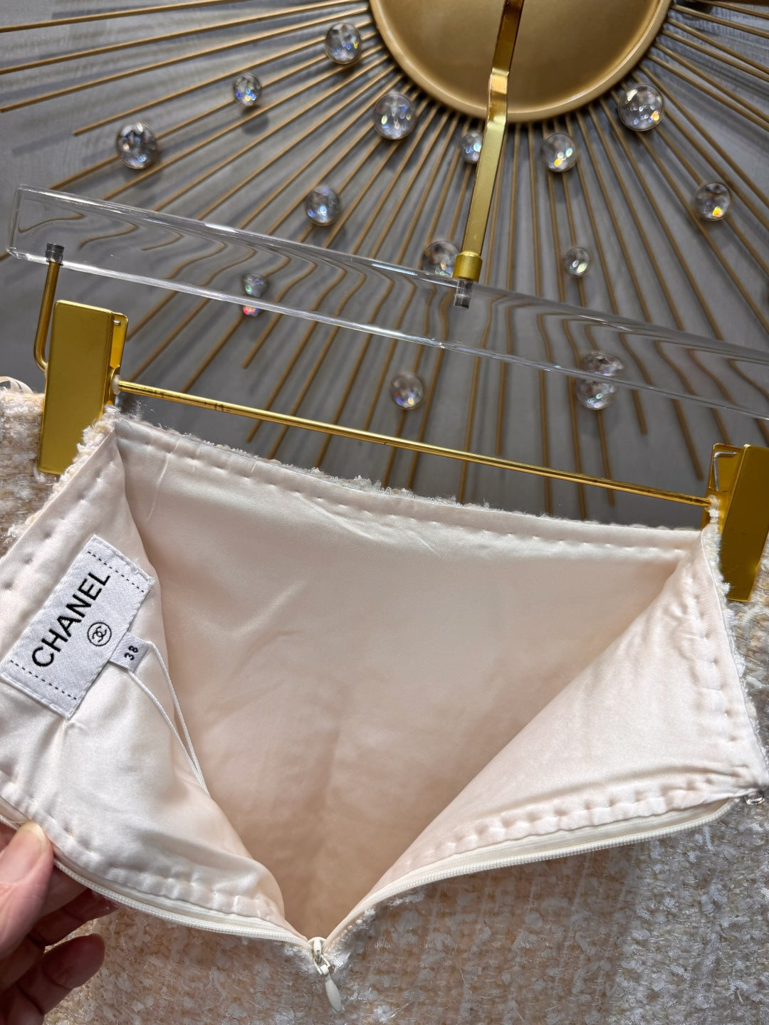 Cha**fw 25K beige tweed jacket and skirt set
