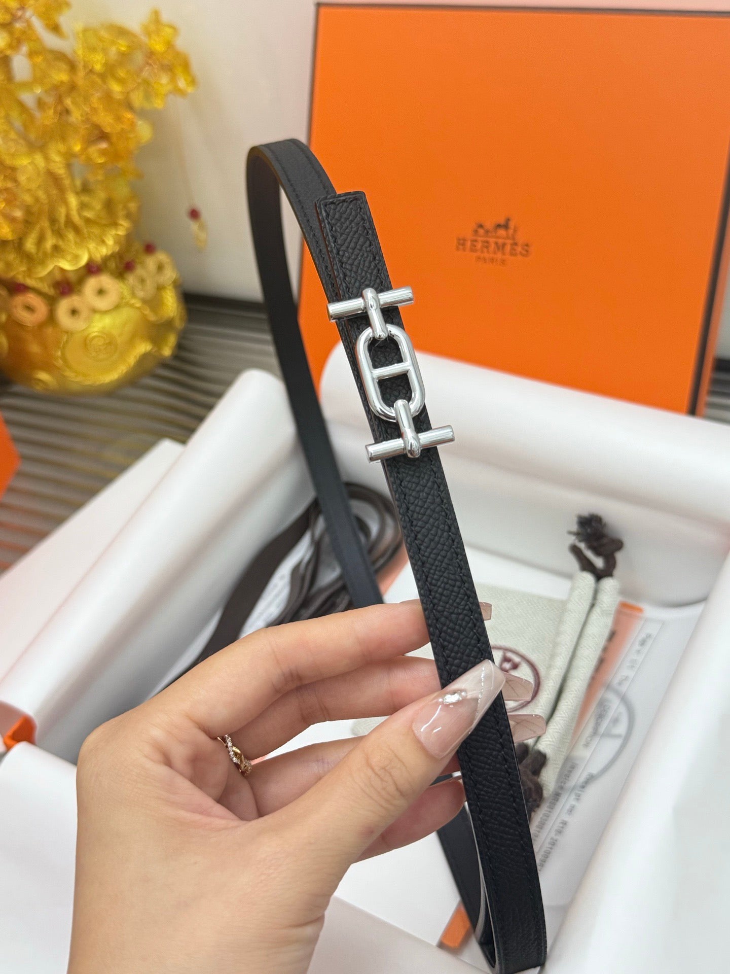 -Accessories such as shoes, bags, belts or wallets will be placed in the corresponding eco-friendly branded gift boxes.
