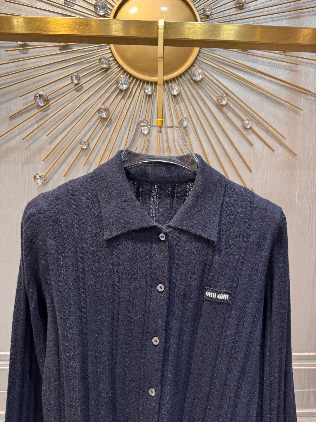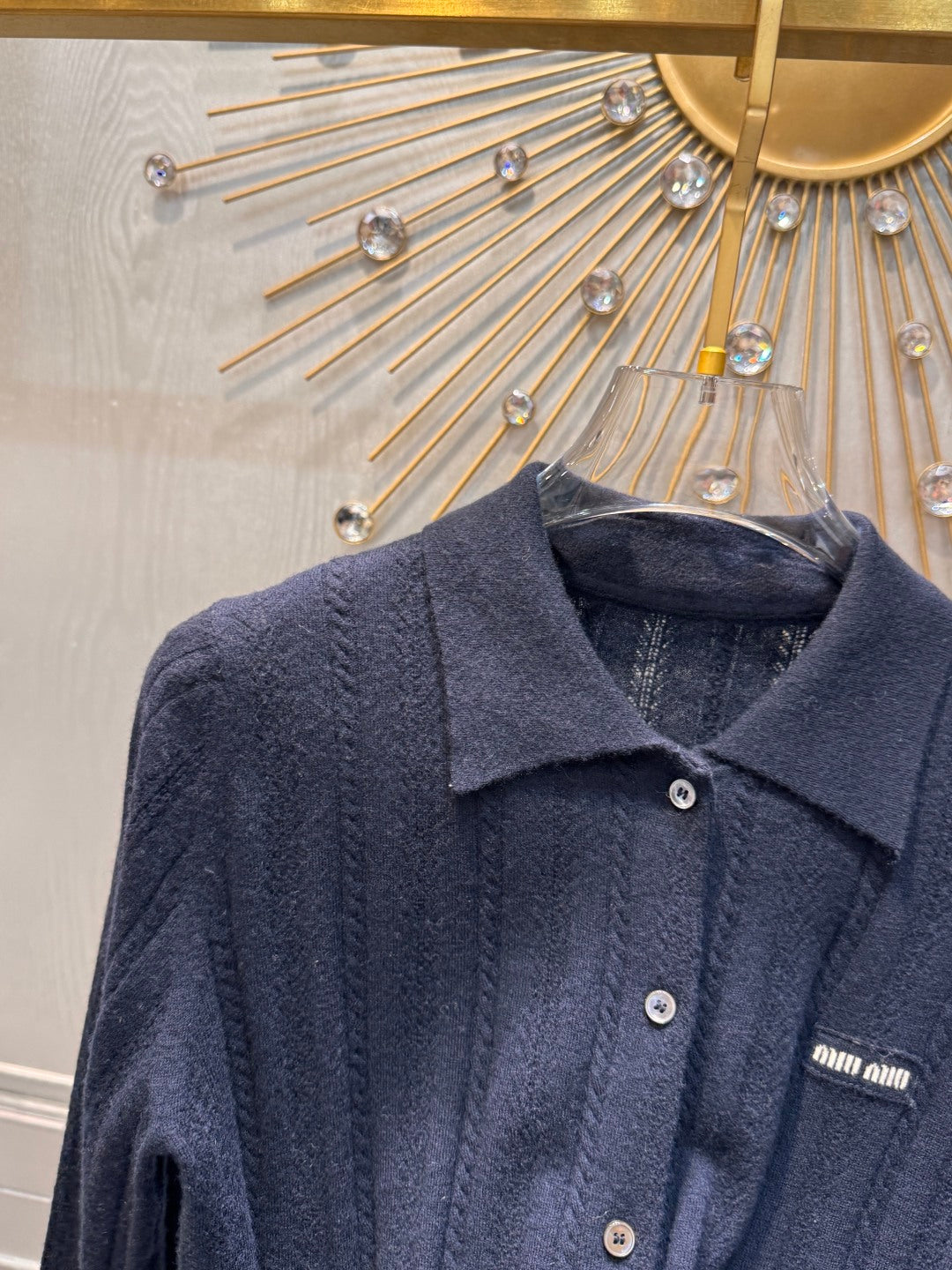 Mu 25fw Blue hollow knitted sweater
