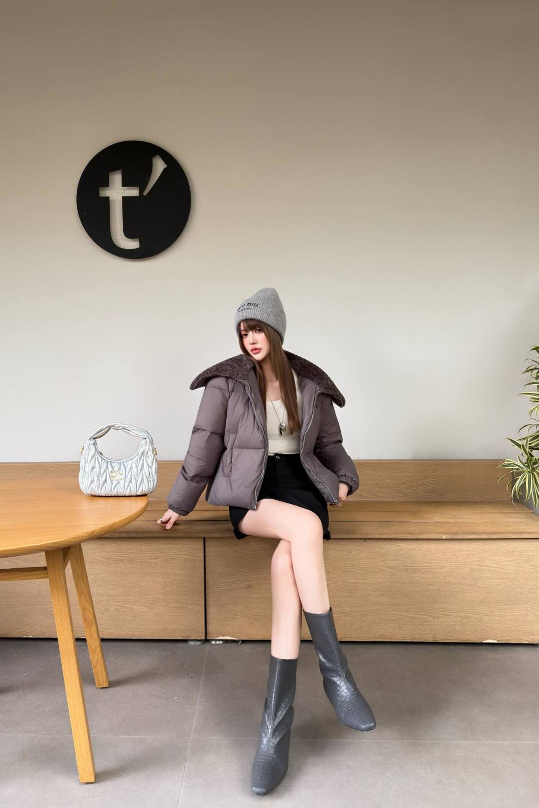 Mu 25fw down jacket with large fur collar