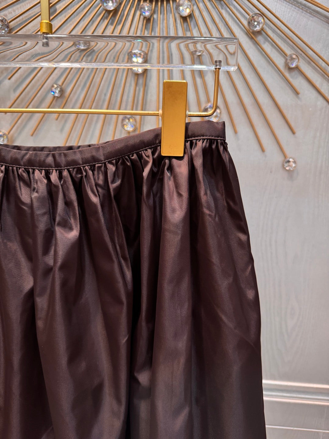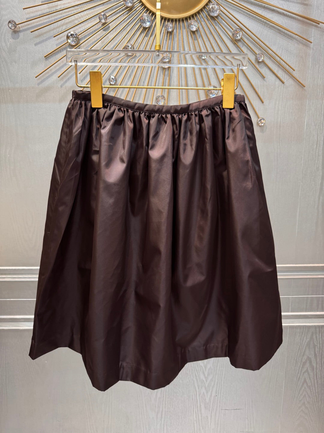Mu**new dark brown nylon midi skirt